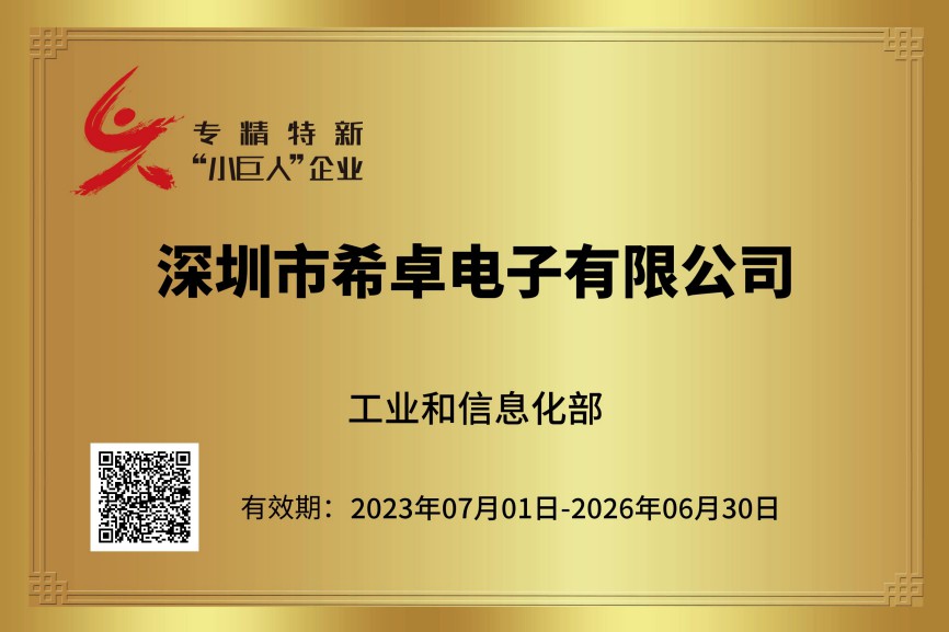 希卓电子-专精特新电子证书